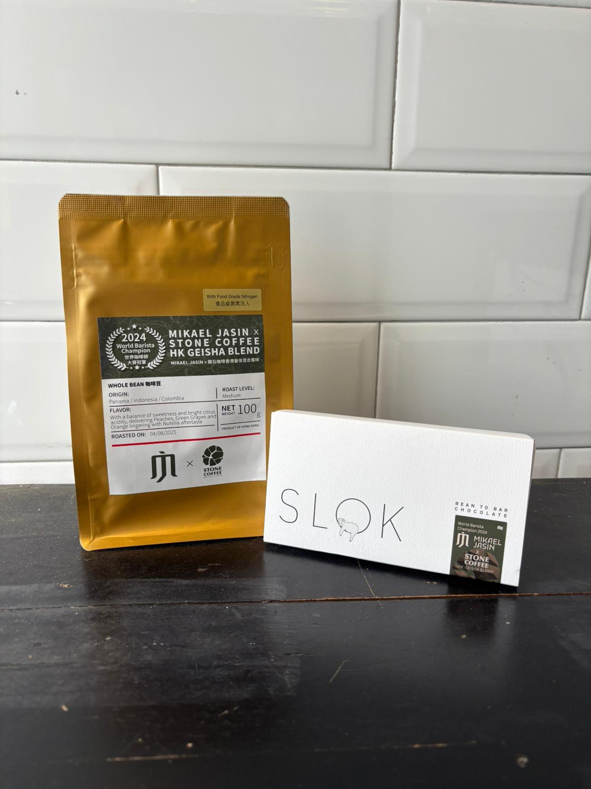 This is a combo of Mikael Jasin x Stone Coffee HK Geisha Blend Coffee Beans and the Chocolate Bar.